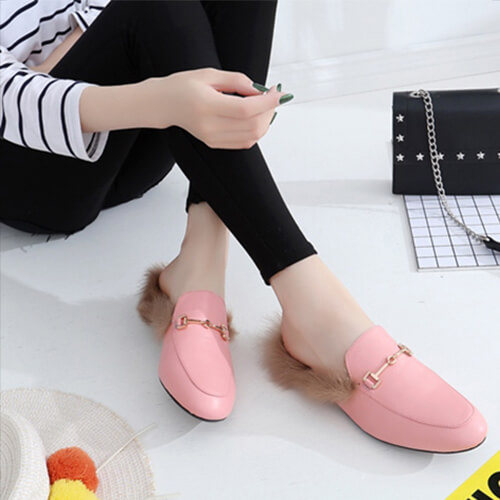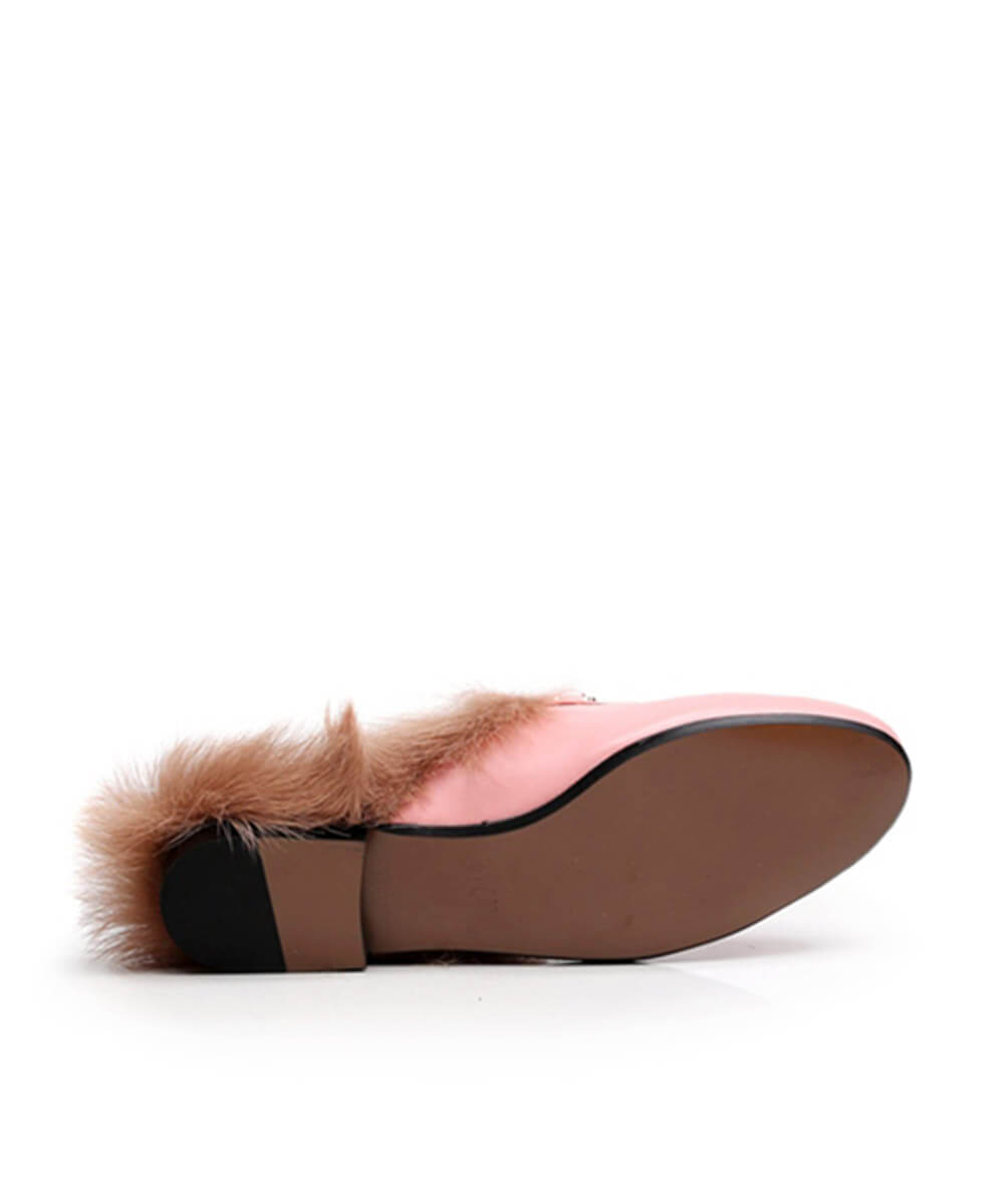 • Material: Leather upper and insole, Raccoon fur trim